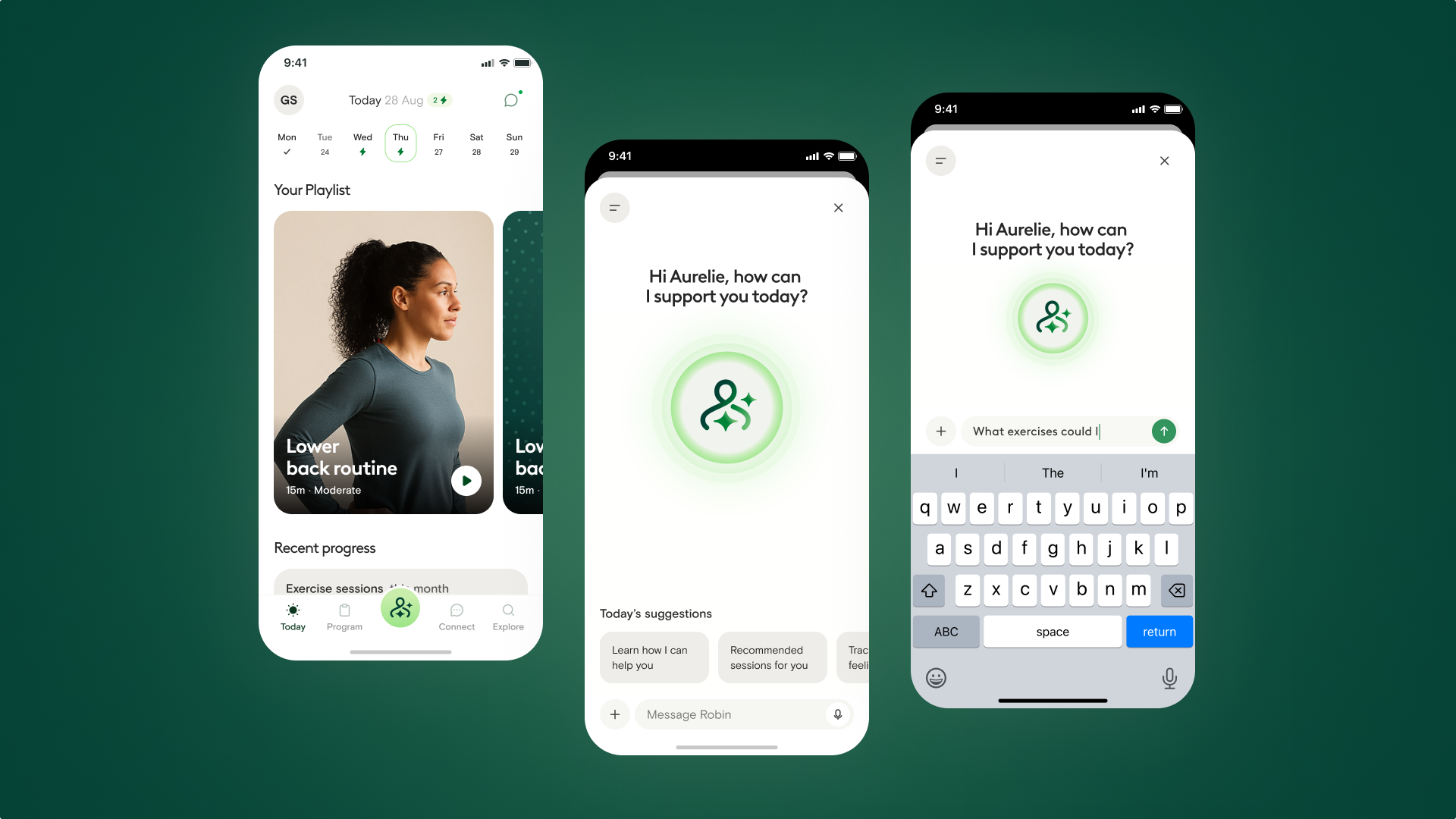 In 12 weeks, Hinge Health’s app transformed from a collection of features into a cohesive, AI-augmented care platform. Robin became an integrated, visible member of the care team: personalizing support, anticipating needs, and deepening trust. Hinge Health’s new experience now embodies movement and intelligence in harmony; a seamless collaboration between human care and empathetic AI, built to help every member move with confidence and purpose. Early prototypes showed:
