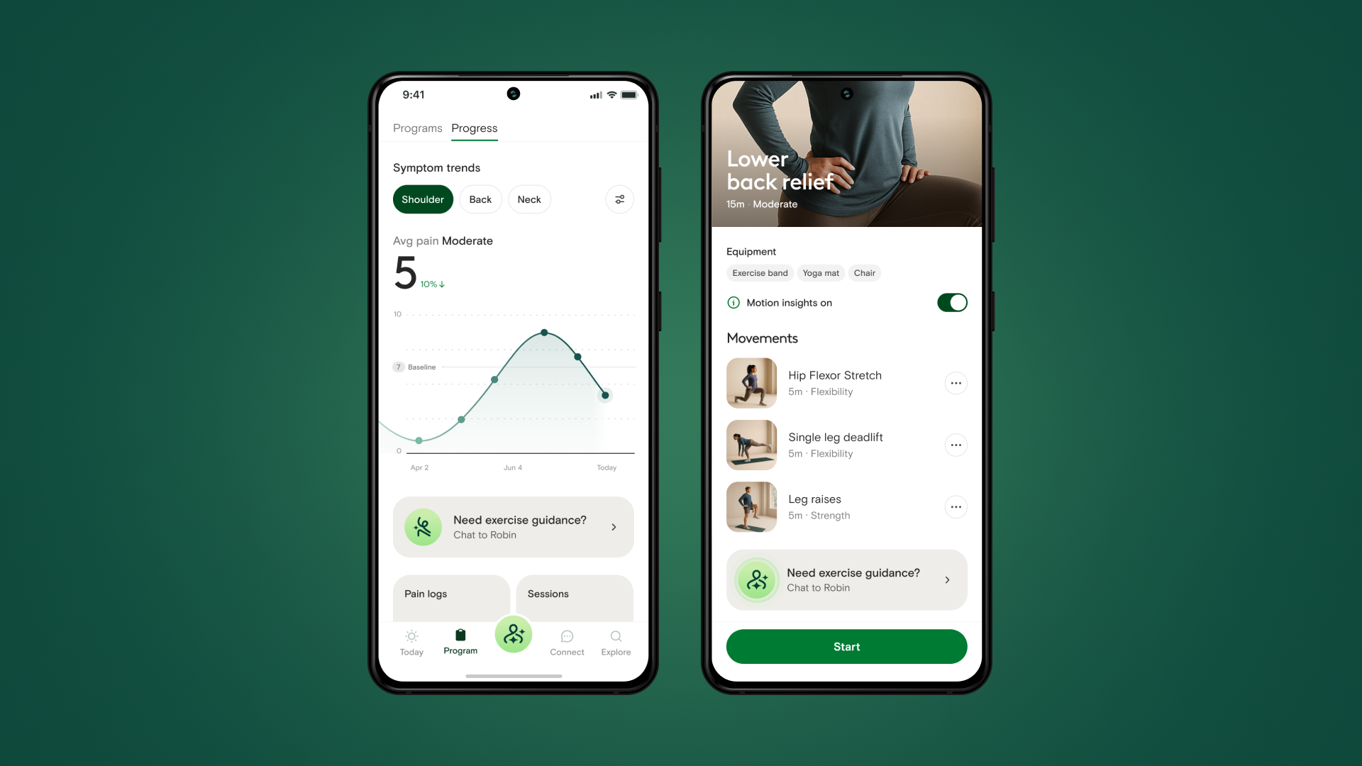 Exercises are designed by physical therapists and adapt as your pain or symptoms change.